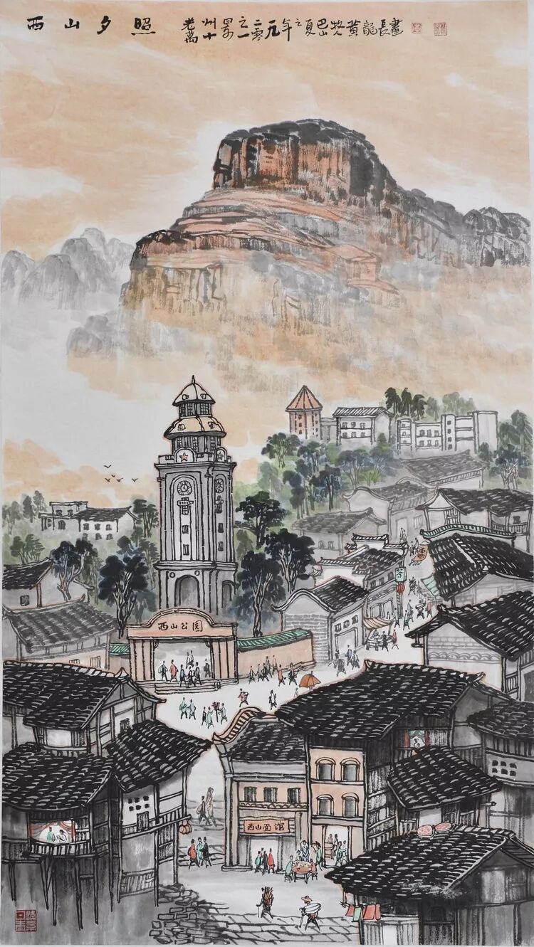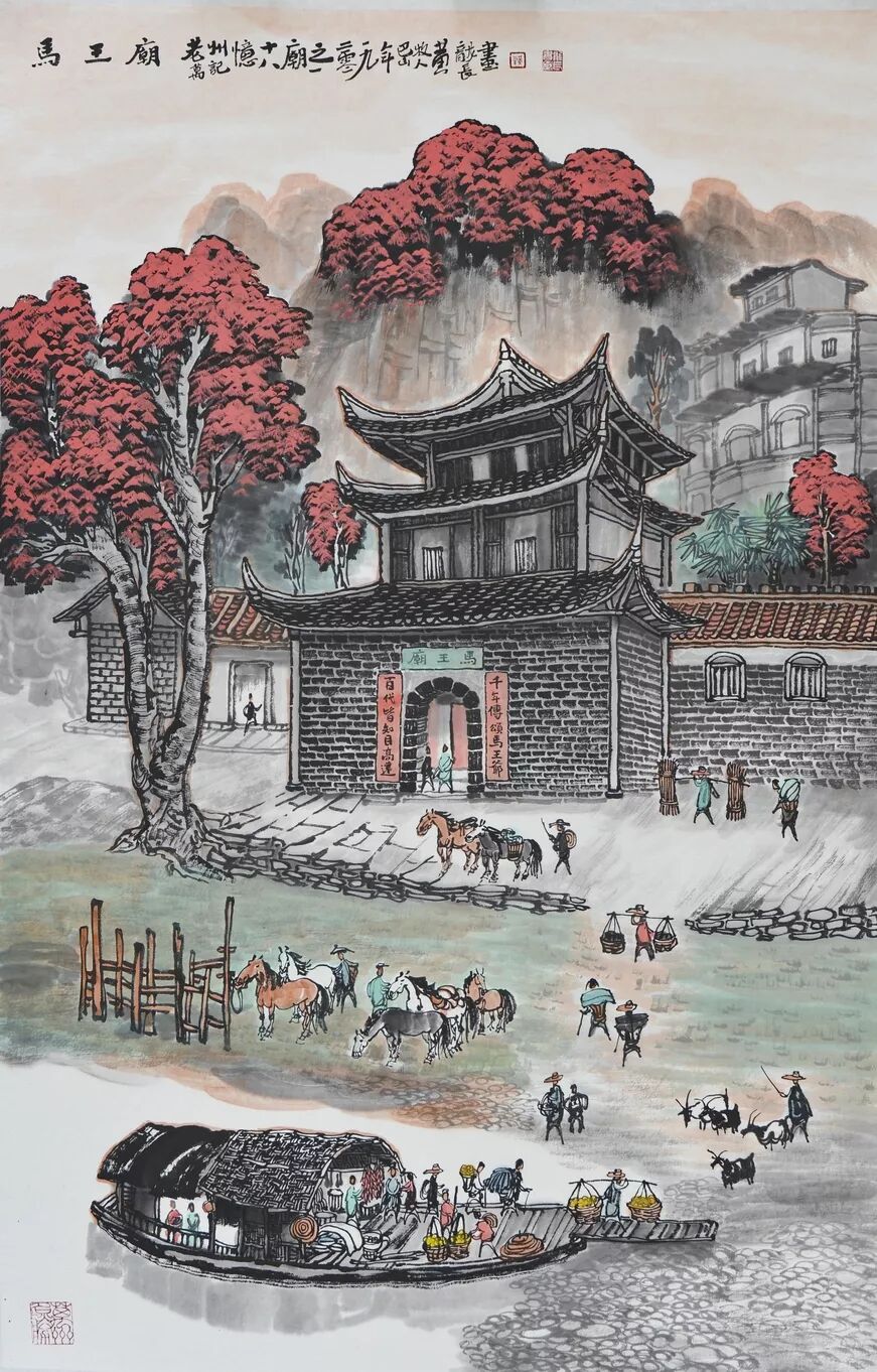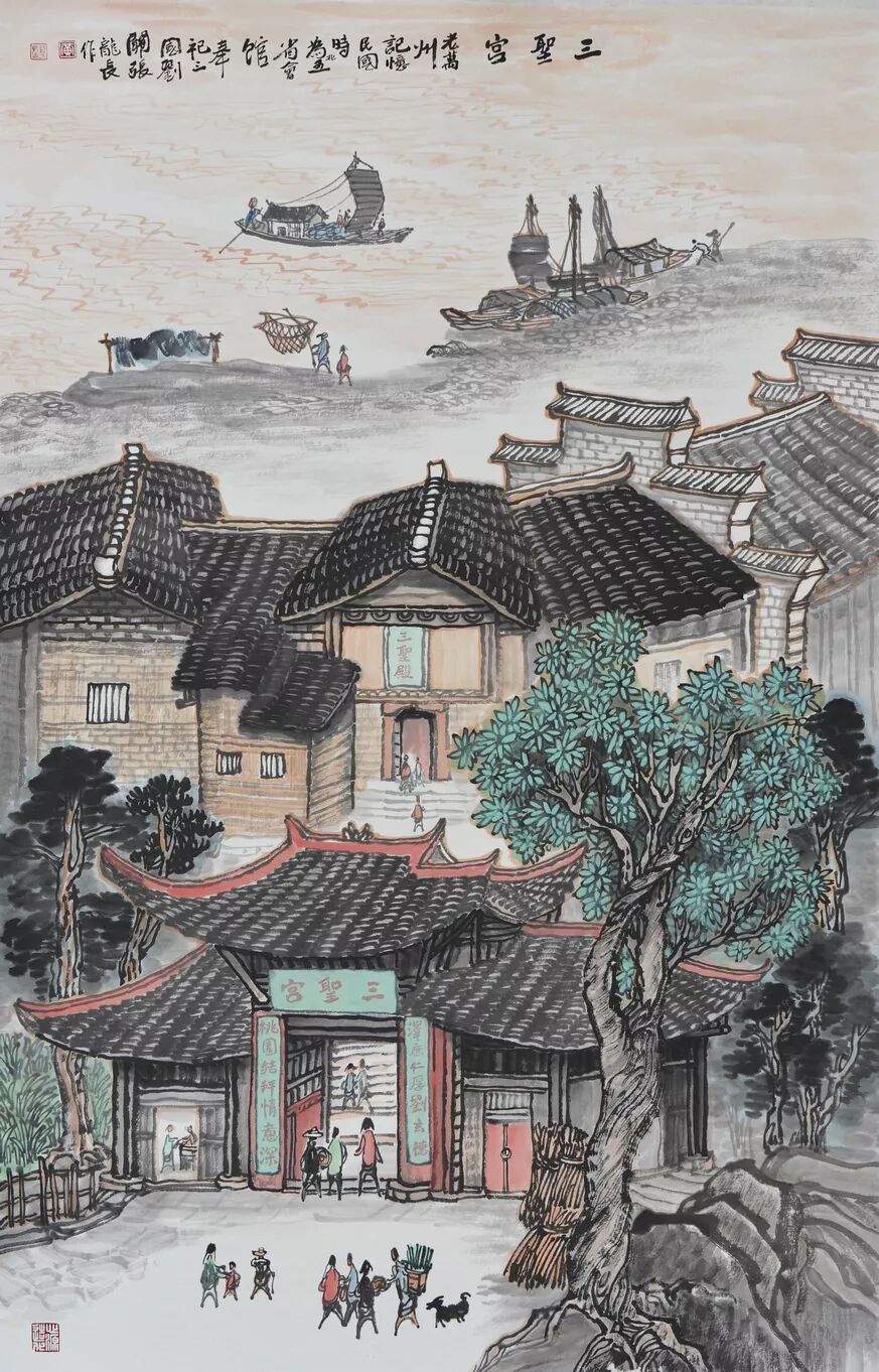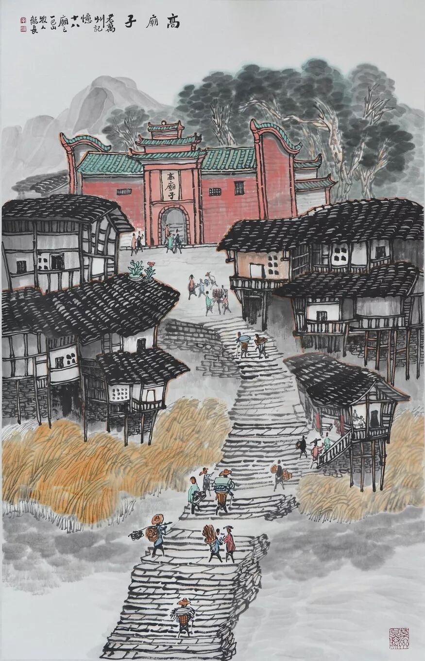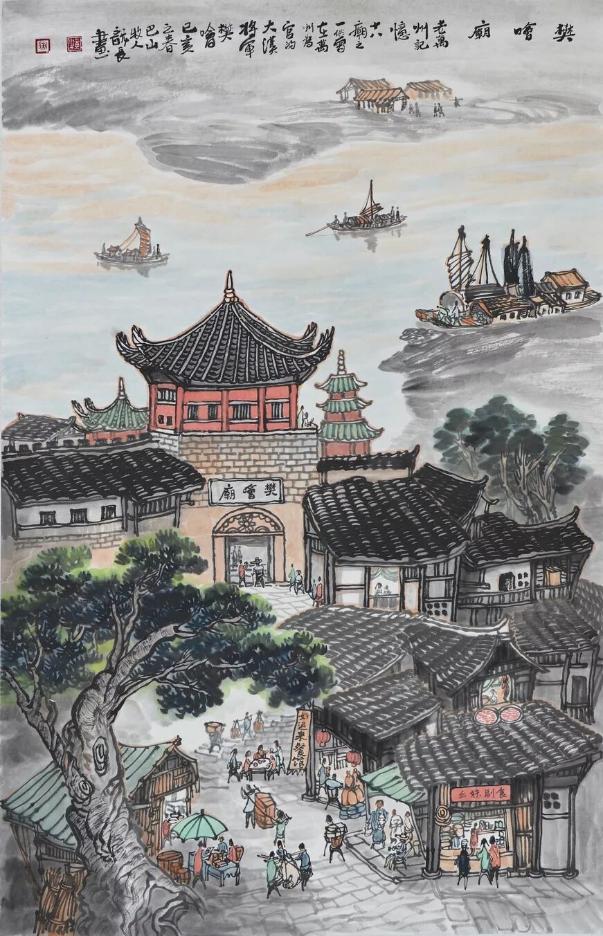 永恒的家园 《万州记忆》组画黄龙长国画作品展 主办单位:重庆市万州区文化和旅游发展委员会 承办单位:重庆三峡移民纪念 重庆市万州区文化馆 重庆市万州区美术家协会 展出内容之一:《老万州十景》系列 、《一院四寺九宫十八庙》系列 时间:2020年4月16日 至5月6日 展出内容之二:《万州码头》系列、《万州古桥》系列、《故乡记忆》系列 时间:2020年5月6日至5月26日 展出内容之三:金钱板唱段:《万州四十八景》系列 时间:2020年5月26日至6月16日 展出地点:重庆三峡移民纪念馆(鱼泉厅) 在完成脱贫攻坚任务的关键时刻,三峡之子、青年画家黄龙长,历经三年、查阅文献资料、收集图片、实际写生考察、走访万州先贤、艰辛创作完成了《万州记忆》系列国画作品。向建党一百周年献礼! 《万州记忆》以七个系列,全方位、多角度、用120幅国画作品来展示万州的历史变迁。 该组画在2018年10月被重庆市委宣传部,重庆市文联评为“优秀创作规划”。 《万州记忆》组画的创作主题是以习近平文艺座谈会讲话精神为指导,努力挖掘万州1800多年延续下来的深厚历史底蕴;以画为媒体再现三峡库区万州往日风情;以画代言述说已溶入众多万州人血液,植入万州人骨髓的乡愁;从而激励家乡人民热爱祖国、热爱家乡,奉献祖国、奉献人民的爱国情怀! 整个组画分为七大系列: 1、《老万州十景》 2、《万州四十八景》3、《一院四寺九宫十八庙》4、《万州码头》5、《万州古桥》6、 《故乡记忆》7、《故乡的黄葛树》 作者以现实主义与浪漫主义相结合的创作风格,形成了独特的民族、地域、个人的三大艺术特色,结合“浅绛”与“青绿”两派的山水画特点进行艺术创作,师法自然,又不拘泥于自然,向新时代展示出了万州古今特有的自然风光,人文历史,是一卷不可多得的具有浓郁地方特色的历史画卷,具有较高的史料价值和较为深远的教育意义。 《万州记忆》组画系列 《老万州十景》 万州历史悠久,已有1800年的历史,万州八景之说始于宋代。 1、岑洞水帘 2、金岛印浮 3、石琴响雪 4、蛾眉碛月 5、秋屏列画 6、都历摩天 7、天城倚空 8、鲁池流杯 9、西山夕照 10、白岩仙迹 岑洞水帘:此景点位于长江南岸翠屏山下一天然溶洞,洞顶有泉(名灌芝泉),夏天注水形如珠帘。隋末江陵岑道愿为避战乱隐居修道于此,距今1370多年历史。宋黄庭坚、陆游、清王世桢等均游岑公洞。洞内留存宋代以来石刻多幅,现已淹没水下。 金岛印浮: 在万州城“盘盘石”、“草盘石”两石之间的江心有一长数百米、宽数十米的巨石,夏天水涨而淹没,冬天水退而出,巨石上积沙可淘金,又名“千金石”,冬春之时,江水碧绿,在阳光的照耀下巨石金光灿灿,远看像一枚巨印,金岛印浮由此而得名。现已淹没水下。 石琴响雪:此景为万州苎溪河上一天然巨石桥,长数十米,形如平放的巨琴,横跨溪流东西两岸自然成桥,故有石琴之谓。当涨水时,桥下瀑布飞悬,溅起雪白浪花,轰鸣如雷;枯水季节,则水流叮咚有声,酷似琴音,故“石琴响雪”而得名。溪流两边是吊脚楼,河边有帆船,现已淹没水下。 蛾眉碛月:古万州南岸翠屏山、岑公洞以下沿江有一湾碛坝,冬春水落碛出,细石斑斑,形如秀眉,故称蛾眉碛月,相传古时城内男女老少每年农历正月初七成群结队渡江嬉游于此碛上,击小鼓,唱竹枝,并用鸡鸭预卜祈愿当年庄稼丰收。现已淹没水下。 秋屏列画:此景与古万州原钟鼓楼对峙,城南岸之南山,山上有翠屏寨,又称翠屏山,古时候林木繁茂,郁郁葱葱,叠翠罗列,远眺极象一幅巨大画屏,故名“翠屏”。清乾隆五十五年(1790年),洄澜塔在翠屏南山下落成,传说为镇水而建.清朝同治八年(1869年),南岸又建造了文峰塔。 都历摩天:都历山位于古万州城之北,又称北山,其山势陡峭,主峰突出老城四周众山之上,由老城举目仰望,高耸入云,有“天际孤峰一柱擎,诸恋罗列似朝尊”之感。都历山半山腰曾建有道观昭明官,又名北山观,是万州有名的北山石城。现在是从江边搬迁来的弥陀禅院。 天城倚空:位于万州苎溪河东,奇峰突起,险峻雄伟,四周绝壁如城墙,峰顶有140余亩农田,为古万州军事要塞、相传刘备曾屯兵于此,故又称“天子城”,现为国家级文物保护单位。 鲁池流杯:鲁池即高笋塘,宋至和元年(1054年),南浦(今万州)太守鲁友开凿,后世人们称作“鲁池”以示纪念。宋嘉祐八年(1063年),员外郎束庄继任南浦太守,在鲁池旁数丈见方青石上凿沟引水环注其间,即流杯池,又称“曲池”,以仿效王曦之《兰亭集序》中描绘的“曲水流觞”,是文人雅玩之地,鲁池畔原名人石刻多处,最著名的是宋代大书法家黄庭坚的《西山碑》,1839年建一古式亭阁予以保护此碑,称为“西山碑亭”,1982年被国家文管局编入全国名胜。如今鲁池已填为市民广场,流杯池、西山碑保存完好。 西山夕照:西山即太白岩,位于古万州西郊,山势陡峭、与城北都历山、天子城诸峰相对峙。自唐朝以来,就是川中名胜,被誉为“万州第一山”。 白岩仙迹:即太白岩,山势陡峭险峻,林木茂密,岩中有多处洞穴,历来有庙宇、摩崖石刻。《名胜志》记载:西山,即太白岩,去县城三里,有“绝尘龛”。相传李白曾读书于此,民间文学有“李白大醉西岩一局棋”的故事。 一院四寺九宫十八庙系列 一个地方的历史文化和民俗文化中,宗教与民祀的形态构成与史实是不可忽视的,都是丰厚的“主旨