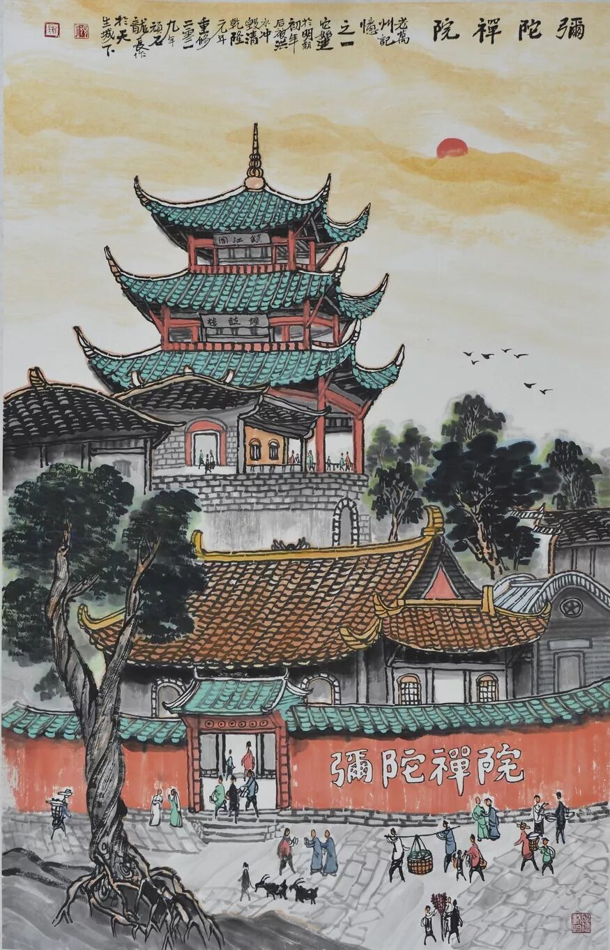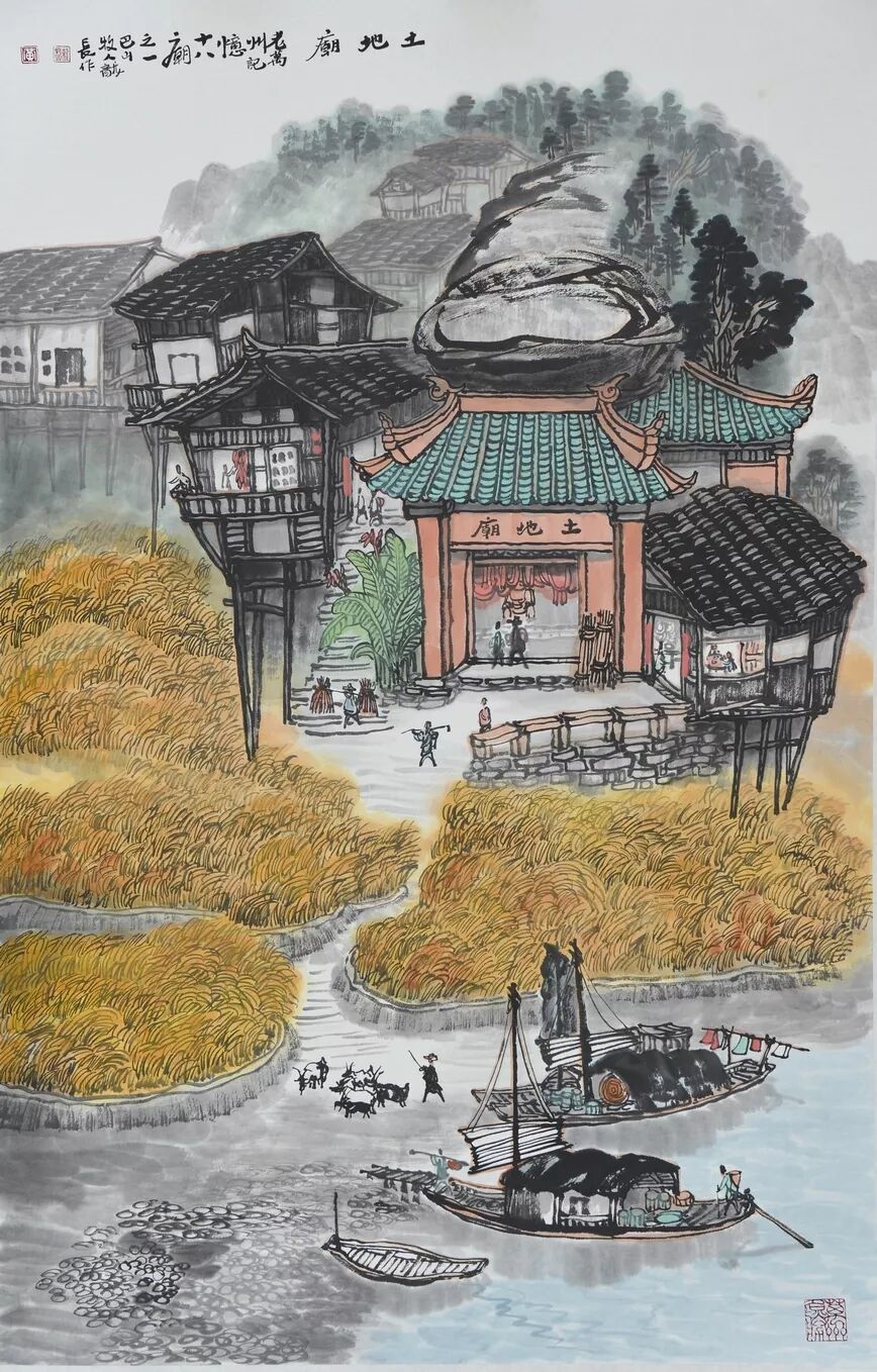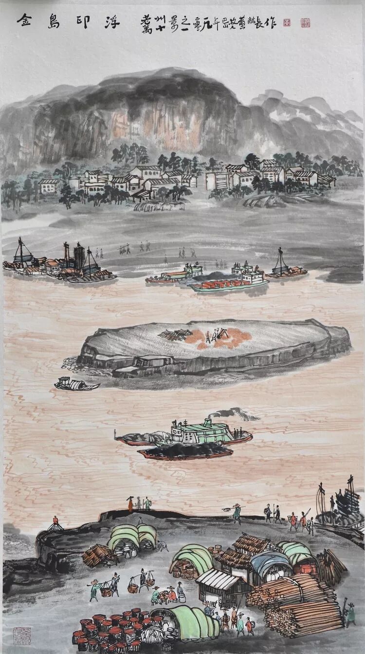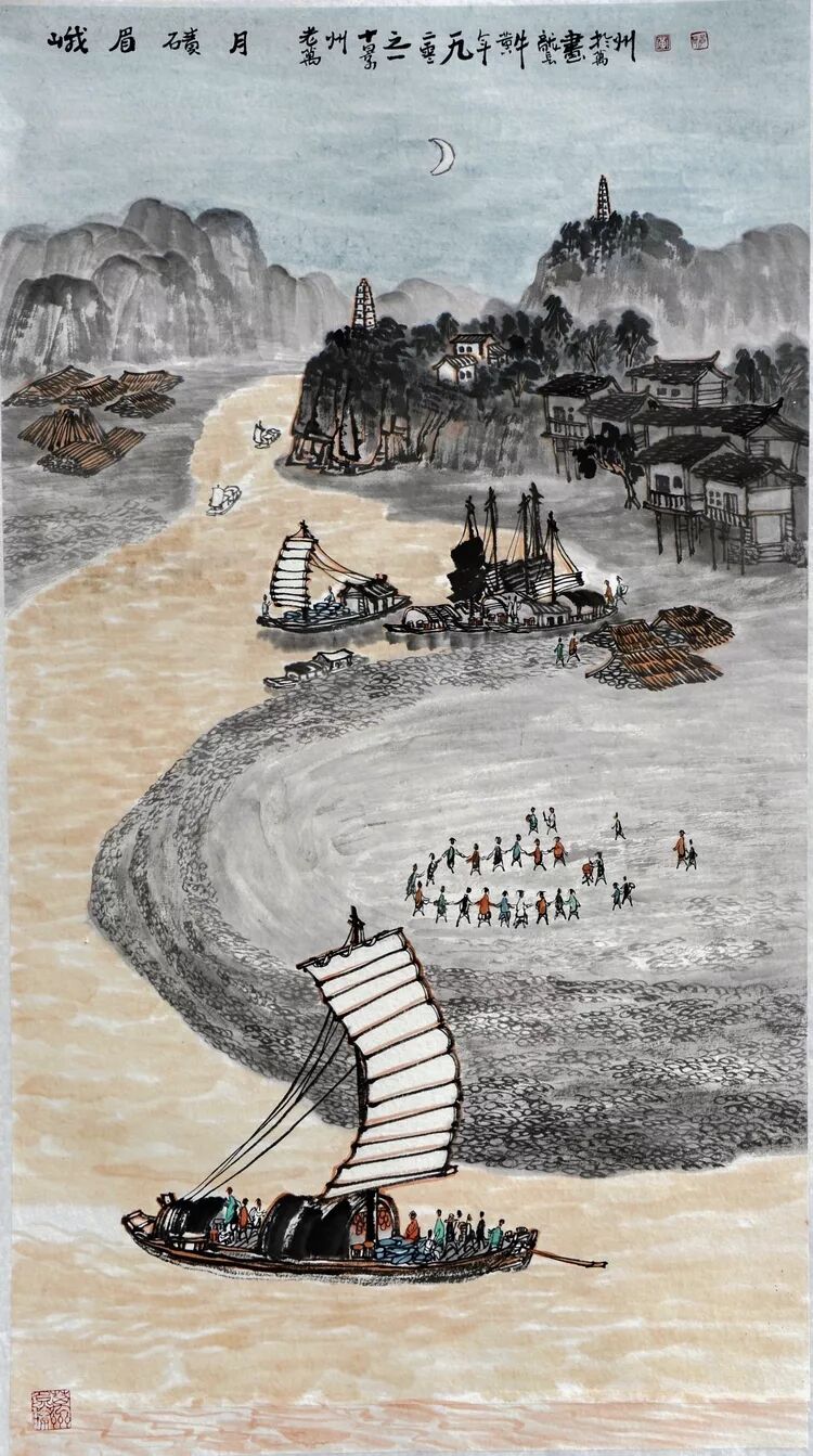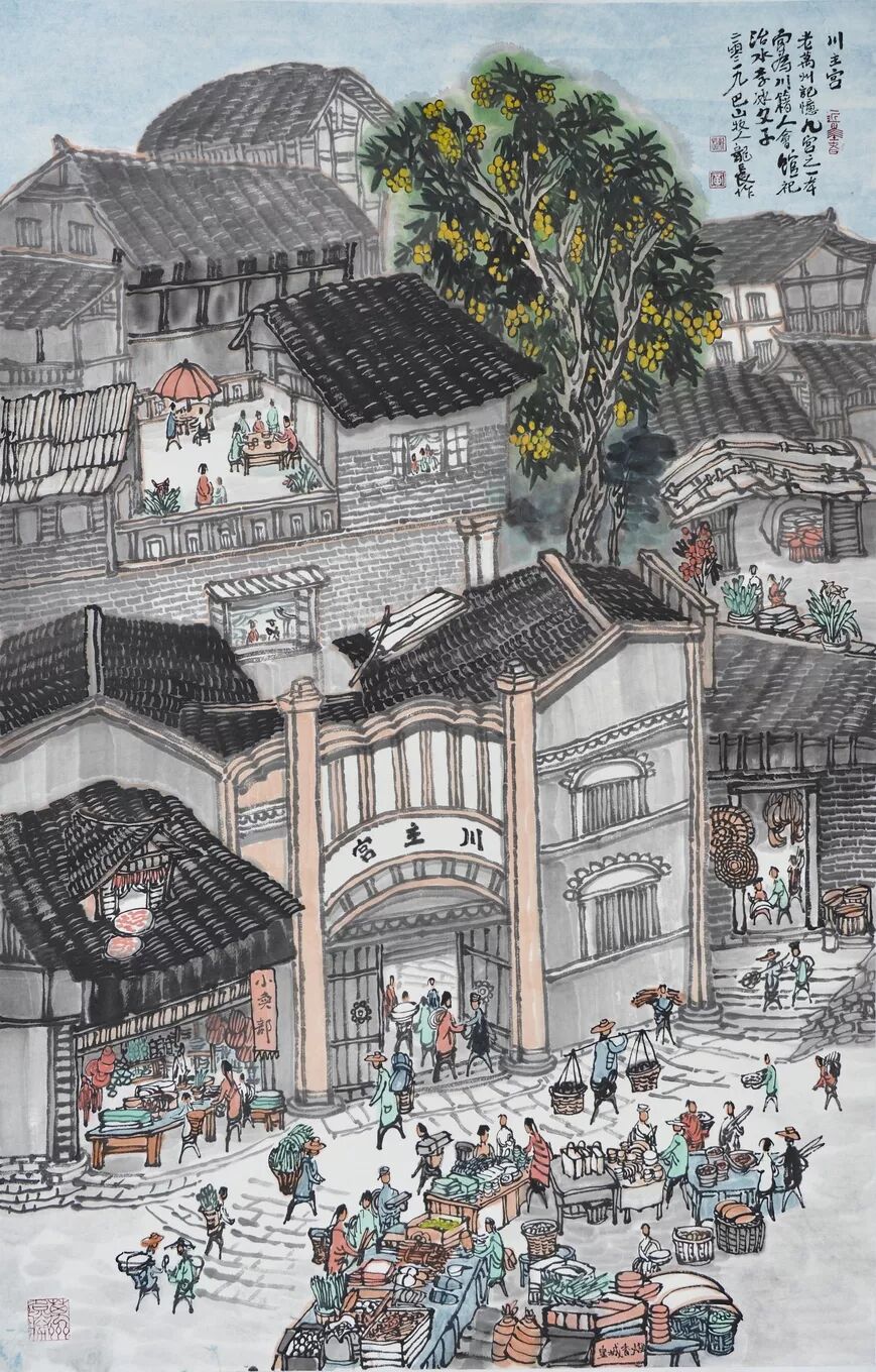永恒的家园 《万州记忆》组画黄龙长国画作品展 主办单位:重庆市万州区文化和旅游发展委员会 承办单位:重庆三峡移民纪念 重庆市万州区文化馆 重庆市万州区美术家协会 展出内容之一:《老万州十景》系列 、《一院四寺九宫十八庙》系列 时间:2020年4月16日 至5月6日 展出内容之二:《万州码头》系列、《万州古桥》系列、《故乡记忆》系列 时间:2020年5月6日至5月26日 展出内容之三:金钱板唱段:《万州四十八景》系列 时间:2020年5月26日至6月16日 展出地点:重庆三峡移民纪念馆(鱼泉厅) 在完成脱贫攻坚任务的关键时刻,三峡之子、青年画家黄龙长,历经三年、查阅文献资料、收集图片、实际写生考察、走访万州先贤、艰辛创作完成了《万州记忆》系列国画作品。向建党一百周年献礼! 《万州记忆》以七个系列,全方位、多角度、用120幅国画作品来展示万州的历史变迁。 该组画在2018年10月被重庆市委宣传部,重庆市文联评为“优秀创作规划”。 《万州记忆》组画的创作主题是以习近平文艺座谈会讲话精神为指导,努力挖掘万州1800多年延续下来的深厚历史底蕴;以画为媒体再现三峡库区万州往日风情;以画代言述说已溶入众多万州人血液,植入万州人骨髓的乡愁;从而激励家乡人民热爱祖国、热爱家乡,奉献祖国、奉献人民的爱国情怀! 整个组画分为七大系列: 1、《老万州十景》 2、《万州四十八景》3、《一院四寺九宫十八庙》4、《万州码头》5、《万州古桥》6、 《故乡记忆》7、《故乡的黄葛树》 作者以现实主义与浪漫主义相结合的创作风格,形成了独特的民族、地域、个人的三大艺术特色,结合“浅绛”与“青绿”两派的山水画特点进行艺术创作,师法自然,又不拘泥于自然,向新时代展示出了万州古今特有的自然风光,人文历史,是一卷不可多得的具有浓郁地方特色的历史画卷,具有较高的史料价值和较为深远的教育意义。 《万州记忆》组画系列 《老万州十景》 万州历史悠久,已有1800年的历史,万州八景之说始于宋代。 1、岑洞水帘 2、金岛印浮 3、石琴响雪 4、蛾眉碛月 5、秋屏列画 6、都历摩天 7、天城倚空 8、鲁池流杯 9、西山夕照 10、白岩仙迹 岑洞水帘:此景点位于长江南岸翠屏山下一天然溶洞,洞顶有泉(名灌芝泉),夏天注水形如珠帘。隋末江陵岑道愿为避战乱隐居修道于此,距今1370多年历史。宋黄庭坚、陆游、清王世桢等均游岑公洞。洞内留存宋代以来石刻多幅,现已淹没水下。 金岛印浮: 在万州城“盘盘石”、“草盘石”两石之间的江心有一长数百米、宽数十米的巨石,夏天水涨而淹没,冬天水退而出,巨石上积沙可淘金,又名“千金石”,冬春之时,江水碧绿,在阳光的照耀下巨石金光灿灿,远看像一枚巨印,金岛印浮由此而得名。现已淹没水下。 石琴响雪:此景为万州苎溪河上一天然巨石桥,长数十米,形如平放的巨琴,横跨溪流东西两岸自然成桥,故有石琴之谓。当涨水时,桥下瀑布飞悬,溅起雪白浪花,轰鸣如雷;枯水季节,则水流叮咚有声,酷似琴音,故“石琴响雪”而得名。溪流两边是吊脚楼,河边有帆船,现已淹没水下。 蛾眉碛月:古万州南岸翠屏山、岑公洞以下沿江有一湾碛坝,冬春水落碛出,细石斑斑,形如秀眉,故称蛾眉碛月,相传古时城内男女老少每年农历正月初七成群结队渡江嬉游于此碛上,击小鼓,唱竹枝,并用鸡鸭预卜祈愿当年庄稼丰收。现已淹没水下。 秋屏列画:此景与古万州原钟鼓楼对峙,城南岸之南山,山上有翠屏寨,又称翠屏山,古时候林木繁茂,郁郁葱葱,叠翠罗列,远眺极象一幅巨大画屏,故名“翠屏”。清乾隆五十五年(1790年),洄澜塔在翠屏南山下落成,传说为镇水而建.清朝同治八年(1869年),南岸又建造了文峰塔。 都历摩天:都历山位于古万州城之北,又称北山,其山势陡峭,主峰突出老城四周众山之上,由老城举目仰望,高耸入云,有“天际孤峰一柱擎,诸恋罗列似朝尊”之感。都历山半山腰曾建有道观昭明官,又名北山观,是万州有名的北山石城。现在是从江边搬迁来的弥陀禅院。 天城倚空:位于万州苎溪河东,奇峰突起,险峻雄伟,四周绝壁如城墙,峰顶有140余亩农田,为古万州军事要塞、相传刘备曾屯兵于此,故又称“天子城”,现为国家级文物保护单位。 鲁池流杯:鲁池即高笋塘,宋至和元年(1054年),南浦(今万州)太守鲁友开凿,后世人们称作“鲁池”以示纪念。宋嘉祐八年(1063年),员外郎束庄继任南浦太守,在鲁池旁数丈见方青石上凿沟引水环注其间,即流杯池,又称“曲池”,以仿效王曦之《兰亭集序》中描绘的“曲水流觞”,是文人雅玩之地,鲁池畔原名人石刻多处,最著名的是宋代大书法家黄庭坚的《西山碑》,1839年建一古式亭阁予以保护此碑,称为“西山碑亭”,1982年被国家文管局编入全国名胜。如今鲁池已填为市民广场,流杯池、西山碑保存完好。 西山夕照:西山即太白岩,位于古万州西郊,山势陡峭、与城北都历山、天子城诸峰相对峙。自唐朝以来,就是川中名胜,被誉为“万州第一山”。 白岩仙迹:即太白岩,山势陡峭险峻,林木茂密,岩中有多处洞穴,历来有庙宇、摩崖石刻。《名胜志》记载:西山,即太白岩,去县城三里,有“绝尘龛”。相传李白曾读书于此,民间文学有“李白大醉西岩一局棋”的故事。 一院四寺九宫十八庙系列 一个地方的历史文化和民俗文化中,宗教与民祀的形态构成与史实是不可忽视的,都是丰厚的“主旨