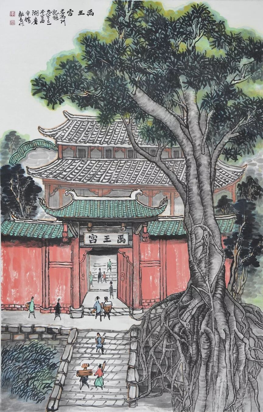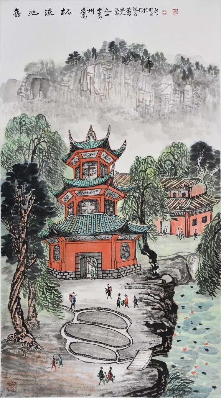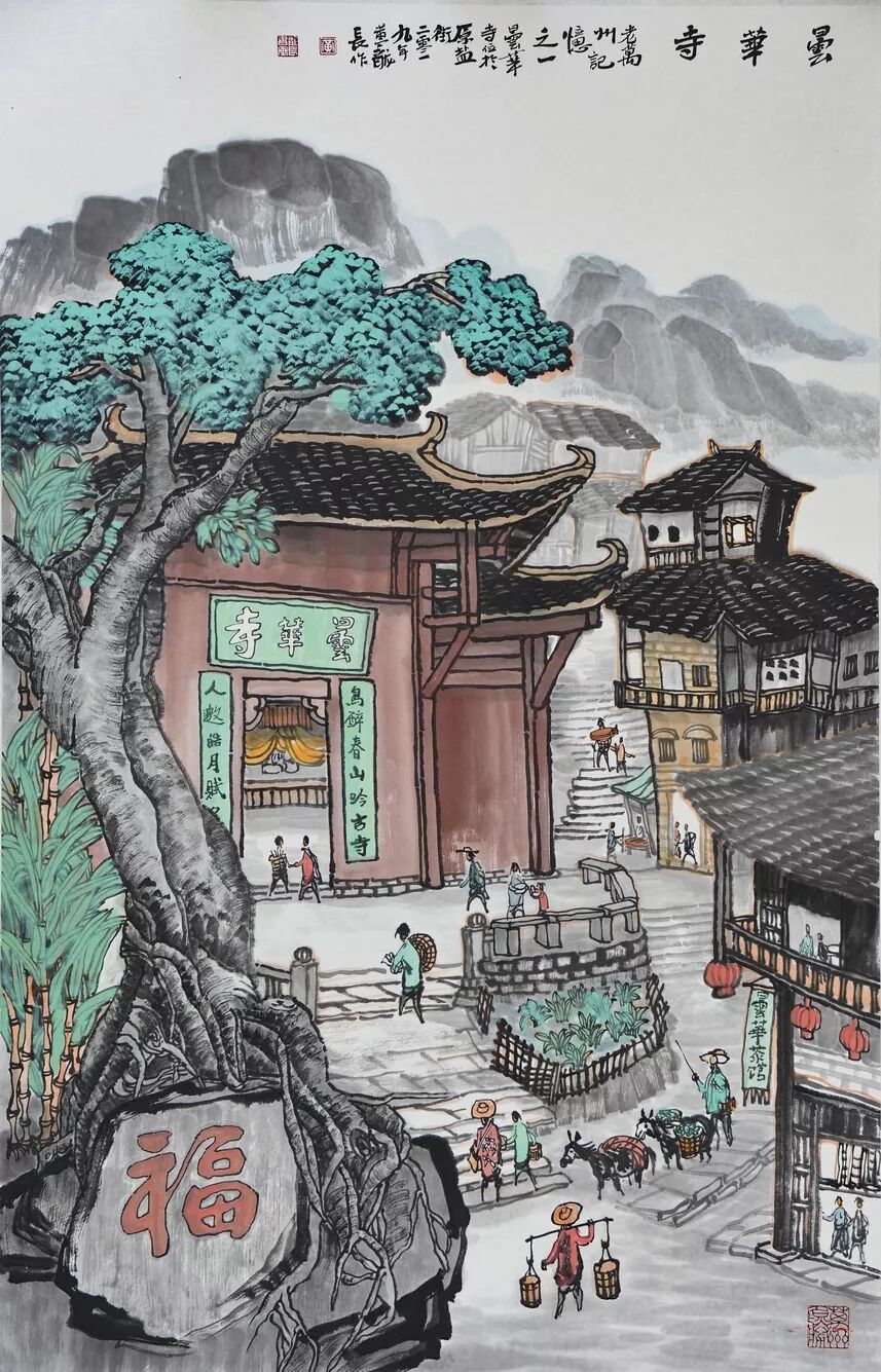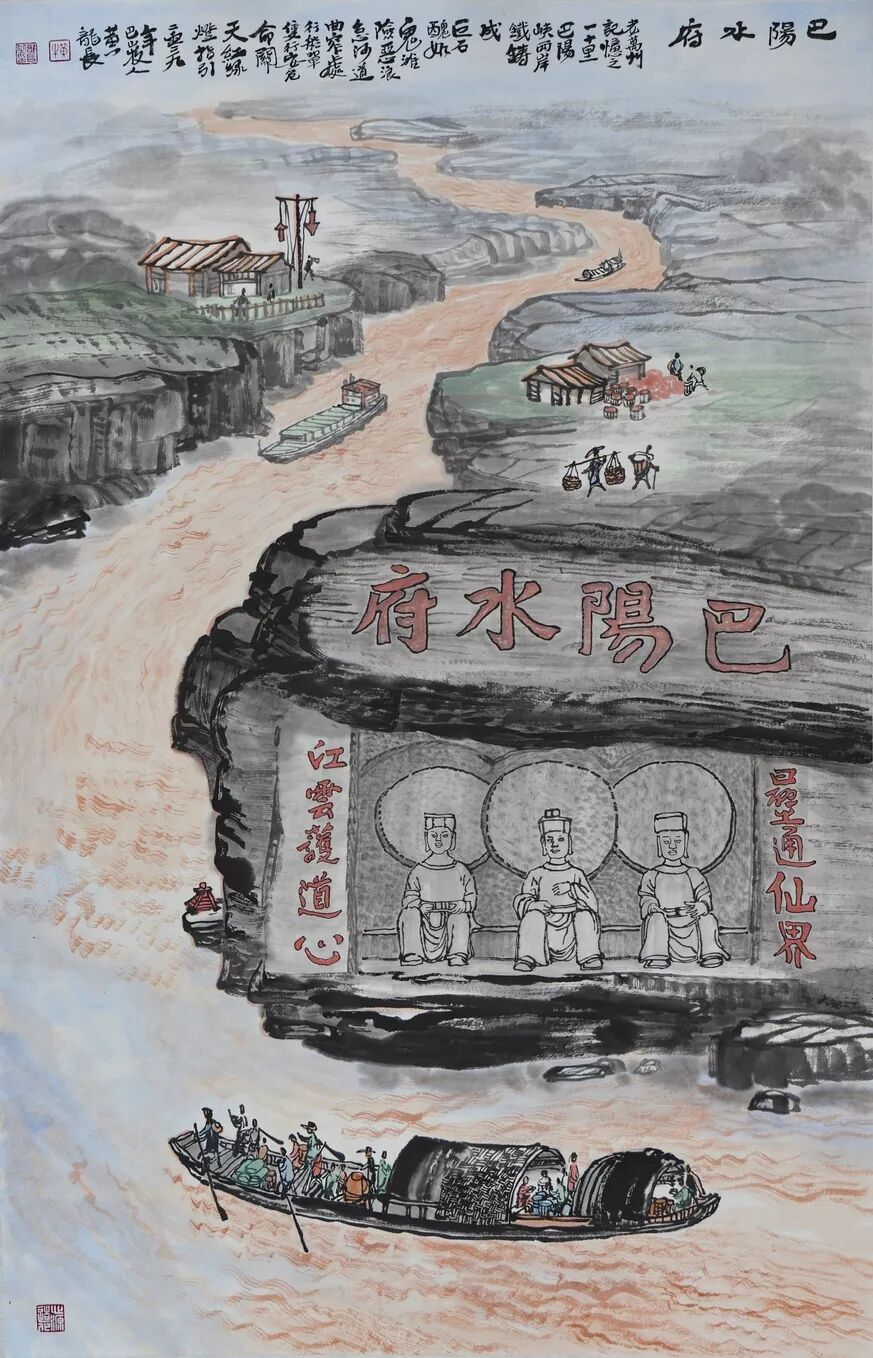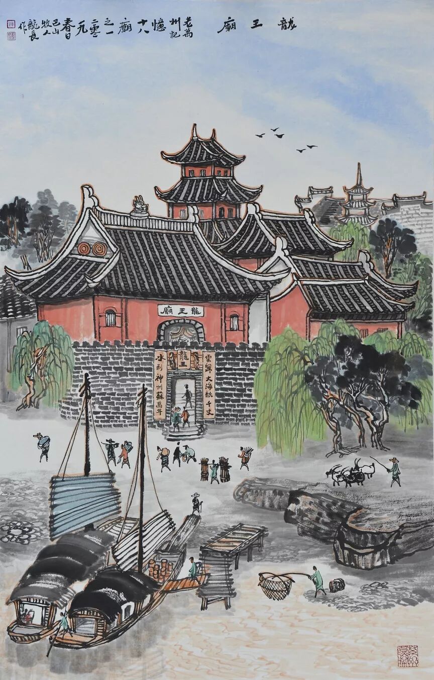 永恒的家园 《万州记忆》组画黄龙长国画作品展 主办单位:重庆市万州区文化和旅游发展委员会 承办单位:重庆三峡移民纪念 重庆市万州区文化馆 重庆市万州区美术家协会 展出内容之一:《老万州十景》系列 、《一院四寺九宫十八庙》系列 时间:2020年4月16日 至5月6日 展出内容之二:《万州码头》系列、《万州古桥》系列、《故乡记忆》系列 时间:2020年5月6日至5月26日 展出内容之三:金钱板唱段:《万州四十八景》系列 时间:2020年5月26日至6月16日 展出地点:重庆三峡移民纪念馆(鱼泉厅) 在完成脱贫攻坚任务的关键时刻,三峡之子、青年画家黄龙长,历经三年、查阅文献资料、收集图片、实际写生考察、走访万州先贤、艰辛创作完成了《万州记忆》系列国画作品。向建党一百周年献礼! 《万州记忆》以七个系列,全方位、多角度、用120幅国画作品来展示万州的历史变迁。 该组画在2018年10月被重庆市委宣传部,重庆市文联评为“优秀创作规划”。 《万州记忆》组画的创作主题是以习近平文艺座谈会讲话精神为指导,努力挖掘万州1800多年延续下来的深厚历史底蕴;以画为媒体再现三峡库区万州往日风情;以画代言述说已溶入众多万州人血液,植入万州人骨髓的乡愁;从而激励家乡人民热爱祖国、热爱家乡,奉献祖国、奉献人民的爱国情怀! 整个组画分为七大系列: 1、《老万州十景》 2、《万州四十八景》3、《一院四寺九宫十八庙》4、《万州码头》5、《万州古桥》6、 《故乡记忆》7、《故乡的黄葛树》 作者以现实主义与浪漫主义相结合的创作风格,形成了独特的民族、地域、个人的三大艺术特色,结合“浅绛”与“青绿”两派的山水画特点进行艺术创作,师法自然,又不拘泥于自然,向新时代展示出了万州古今特有的自然风光,人文历史,是一卷不可多得的具有浓郁地方特色的历史画卷,具有较高的史料价值和较为深远的教育意义。 《万州记忆》组画系列 《老万州十景》 万州历史悠久,已有1800年的历史,万州八景之说始于宋代。 1、岑洞水帘 2、金岛印浮 3、石琴响雪 4、蛾眉碛月 5、秋屏列画 6、都历摩天 7、天城倚空 8、鲁池流杯 9、西山夕照 10、白岩仙迹 岑洞水帘:此景点位于长江南岸翠屏山下一天然溶洞,洞顶有泉(名灌芝泉),夏天注水形如珠帘。隋末江陵岑道愿为避战乱隐居修道于此,距今1370多年历史。宋黄庭坚、陆游、清王世桢等均游岑公洞。洞内留存宋代以来石刻多幅,现已淹没水下。 金岛印浮: 在万州城“盘盘石”、“草盘石”两石之间的江心有一长数百米、宽数十米的巨石,夏天水涨而淹没,冬天水退而出,巨石上积沙可淘金,又名“千金石”,冬春之时,江水碧绿,在阳光的照耀下巨石金光灿灿,远看像一枚巨印,金岛印浮由此而得名。现已淹没水下。 石琴响雪:此景为万州苎溪河上一天然巨石桥,长数十米,形如平放的巨琴,横跨溪流东西两岸自然成桥,故有石琴之谓。当涨水时,桥下瀑布飞悬,溅起雪白浪花,轰鸣如雷;枯水季节,则水流叮咚有声,酷似琴音,故“石琴响雪”而得名。溪流两边是吊脚楼,河边有帆船,现已淹没水下。 蛾眉碛月:古万州南岸翠屏山、岑公洞以下沿江有一湾碛坝,冬春水落碛出,细石斑斑,形如秀眉,故称蛾眉碛月,相传古时城内男女老少每年农历正月初七成群结队渡江嬉游于此碛上,击小鼓,唱竹枝,并用鸡鸭预卜祈愿当年庄稼丰收。现已淹没水下。 秋屏列画:此景与古万州原钟鼓楼对峙,城南岸之南山,山上有翠屏寨,又称翠屏山,古时候林木繁茂,郁郁葱葱,叠翠罗列,远眺极象一幅巨大画屏,故名“翠屏”。清乾隆五十五年(1790年),洄澜塔在翠屏南山下落成,传说为镇水而建.清朝同治八年(1869年),南岸又建造了文峰塔。 都历摩天:都历山位于古万州城之北,又称北山,其山势陡峭,主峰突出老城四周众山之上,由老城举目仰望,高耸入云,有“天际孤峰一柱擎,诸恋罗列似朝尊”之感。都历山半山腰曾建有道观昭明官,又名北山观,是万州有名的北山石城。现在是从江边搬迁来的弥陀禅院。 天城倚空:位于万州苎溪河东,奇峰突起,险峻雄伟,四周绝壁如城墙,峰顶有140余亩农田,为古万州军事要塞、相传刘备曾屯兵于此,故又称“天子城”,现为国家级文物保护单位。 鲁池流杯:鲁池即高笋塘,宋至和元年(1054年),南浦(今万州)太守鲁友开凿,后世人们称作“鲁池”以示纪念。宋嘉祐八年(1063年),员外郎束庄继任南浦太守,在鲁池旁数丈见方青石上凿沟引水环注其间,即流杯池,又称“曲池”,以仿效王曦之《兰亭集序》中描绘的“曲水流觞”,是文人雅玩之地,鲁池畔原名人石刻多处,最著名的是宋代大书法家黄庭坚的《西山碑》,1839年建一古式亭阁予以保护此碑,称为“西山碑亭”,1982年被国家文管局编入全国名胜。如今鲁池已填为市民广场,流杯池、西山碑保存完好。 西山夕照:西山即太白岩,位于古万州西郊,山势陡峭、与城北都历山、天子城诸峰相对峙。自唐朝以来,就是川中名胜,被誉为“万州第一山”。 白岩仙迹:即太白岩,山势陡峭险峻,林木茂密,岩中有多处洞穴,历来有庙宇、摩崖石刻。《名胜志》记载:西山,即太白岩,去县城三里,有“绝尘龛”。相传李白曾读书于此,民间文学有“李白大醉西岩一局棋”的故事。 一院四寺九宫十八庙系列 一个地方的历史文化和民俗文化中,宗教与民祀的形态构成与史实是不可忽视的,都是丰厚的“主旨