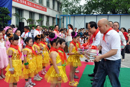 5月30日上午,三峡之子联合会会长袁安明、秘书长林成仁与建安建设集团工作人员一行,到重庆市万州驸马小学校进行“六一”慰问,并捐赠《少儿百科全书》、《现代汉语辞典》、《成语典故》、《上下五千年》等每套价值数百元的工具书共50套。驸马学校是袁安明会长的母校,他在发言中鼓励同学们要努力学习,早日成为祖国的栋梁之才。万州区钟鼓楼街道办事处党委书记刘伟等领导参加活动。