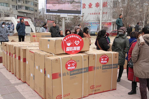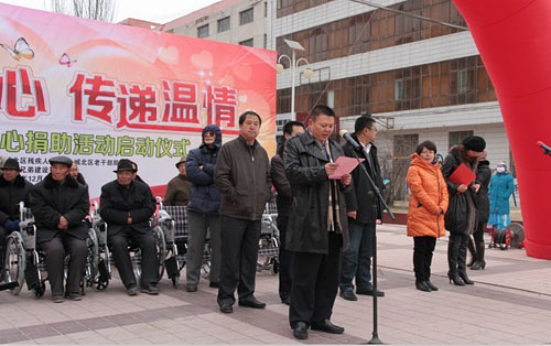 天寒人心暖,爱心见真情。12月28日,青海省西宁市城北区爱心捐助活动启动仪式在朝阳广场举行,来自城北区各社区的567名老年人、残疾人收到了一份特殊的新年礼物价值20万元的轮椅、手杖、手杖凳等物资。
