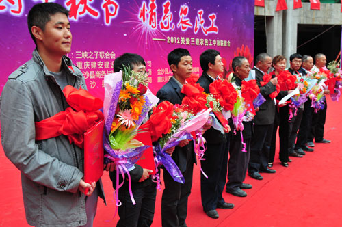 作为此次金沙行的重头大戏,9月26日下午,在建安集团的一个工地上,举行了规模盛大的“月圆中秋节、情系农民工”联欢会。