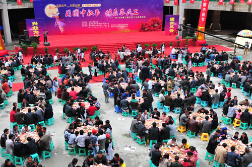 演出结束后,工地上宴开百余桌,参会领导和三峡之子、农民工们一起举杯庆祝国庆和中秋佳节的到来。