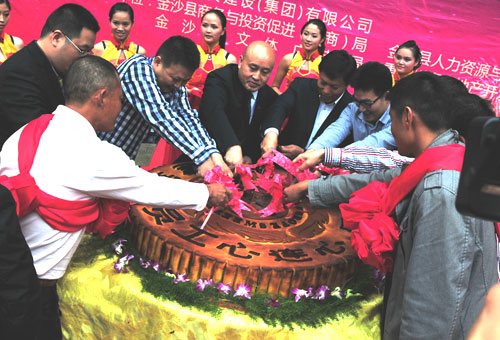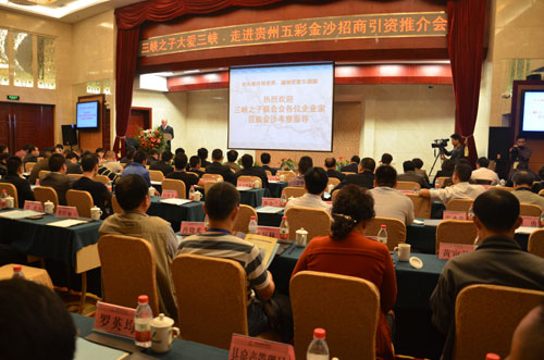 会上,金沙县领导从航空、公路、水运、矿产资源、旅游资源、生态资源、招商引资优惠政策、投资服务以及工业经济、城市建设、农业产业等方便全面介绍了该县经济社会发展基本情况。金沙是黔北四大商贸古镇之首,川黔渝商要道,人力资源丰富。2011年,全县完成生产总值108.28亿元,地方财政收入16.5亿元,在“西部百强”的位次从2010年的第76位攀升至2011年的第58位,在全省经济发展综合位次从2010年的第15位跃升至2011年的第4位。金沙依托杭瑞高速公路、规划建设中的赤望高速和四川古蔺经金沙至贵阳高速公路,形成县域“X”型区域快速交通网络。目前,城市和产业园区主要干道123公里道路已基本贯通,使得金沙县的经济发展区位优势非常明显。与此同时,对入驻该县企业实行手续全程代办,对落户该县的招商引资项目,按照“一个项目、一名领导、一套班子、一抓到底”的要求,做好项目建设跟踪服务。