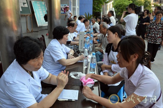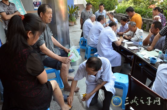 同时,在高粱镇中心卫生院门前,来自三峡中心医院和三峡医专附院的主任中医师及医学博士们,已展开忙碌的义诊。他们分别持有各自的专长——肝胆病、脾胃病、肺病、肿瘤、妇科疾病、中医内科、针灸理疗等,为高粱镇村民把脉开方。医专附属医院中医分院的姜兴鹏院长尤为忙绿,不停地为前往就诊的村民进行针灸和理疗。三峡中心医院的李寿彭医生开出一份份药方,忙得满头大汗,但笑容却始终挂在他的脸上。来自高粱镇沙坝村10组的60岁村民詹一玲,拿着义诊专家开出的处方如获至宝,高兴地说:“平常我们到医院去还不一定能挂上专家的号,没想到今天专家能来到家门口给我们诊病。”