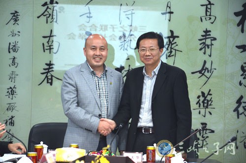 对广州潘高寿药业股份有限公司董事长 魏大华(右) 全票当选广东分会会长表示祝贺