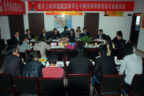 昨日下午,来自三峡学院政法系10余名学生与重庆锦扬律师事务所律师面对面,就理论如何与实践相结合,如何才能成为一名有社会责任感、有前瞻思维的律师进行沟通和交流。