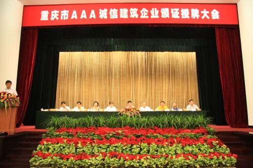 2012年8月28日上午, 2012年重庆市AAA诚信建筑企业颁证授牌大会在渝州宾馆隆重召开。重庆市建筑业协会会长陈在贵在大会上作了“2012年重庆市AAA诚信建筑企业行业评价认证情况报告” ,市城乡建委、市民政局、市工商局、市信用建筑领导小组、建设工程交易中心等领导参加颁证大会并作重要讲话。