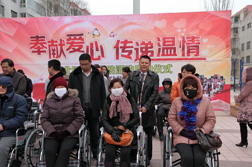 天寒人心暖,爱心见真情。12月28日,青海省西宁市城北区爱心捐助活动启动仪式在朝阳广场举行,来自城北区各社区的567名老年人、残疾人收到了一份特殊的新年礼物价值20万元的轮椅、手杖、手杖凳等物资。