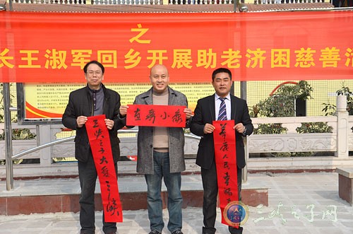 三峡之子联合会会长袁安明,带领近20名三峡之子参加了该慈善活动。活动现场,三峡之子王岱佛、黄龙长挥毫泼墨,现场为全体村民书写春联。活动结束后,三峡之子吴元江在扶一位行动不便的老人坐上摩托车时,情不自禁地从包里拿出400元塞到老人怀里,祝老人家春节快乐。袁安明会长说,王淑军的义举不但弘扬了中华民族的美德,而且教育了后来者,功德无量。