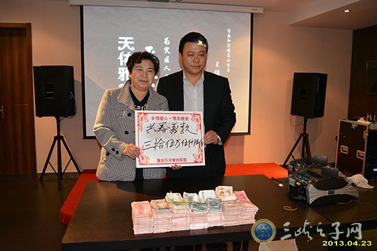 (三峡都市报 记者 秦俭)4月23日下午,三峡之子联合会北京分会,开县(北京)乡情联络组,在北京渝都仁和餐饮公司三楼大厅,联合举行为地震灾区捐款活动。