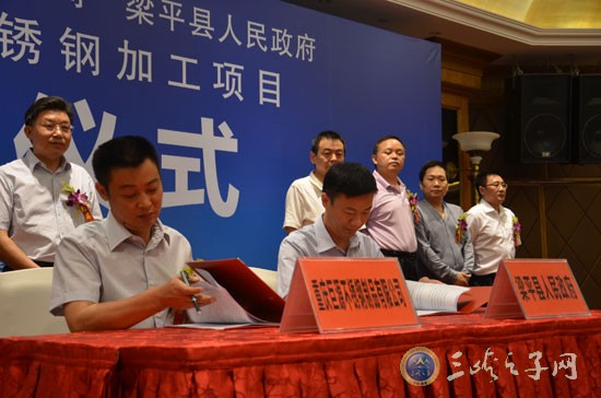 (三峡都市报 记者 秦俭)7月29日上午11点18分,重庆巨源不锈钢制品有限公司与梁平县人民政府,签约年产30万吨不锈钢加工项目,简单而热烈的签约仪式在梁平名豪酒店举行。三峡之子、重庆巨源不锈钢制品有限公司董事长贺有才,代表公司与梁平县政府县长吴盛海出席签约。