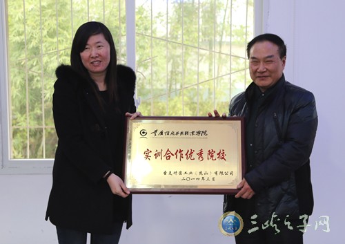 签约后,苏州思拜克公司、圣美公司向我校赠送了“人才培养战略合作院校”、“实训合作优秀院校”的牌匾。
