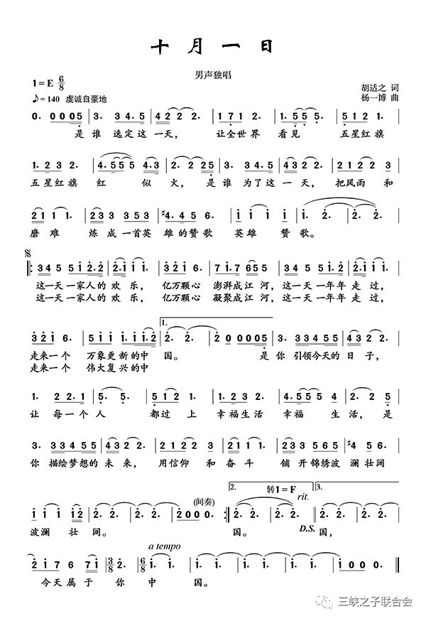 歌曲《十月一日》,是由著名词作家、三峡之子胡适之和青年作曲家杨一博联袂新锐跨界青年歌唱家王凯,精心打造的国庆献礼力作。歌曲自创作完成以来,即受到业界高度评价,深受听众喜爱。该歌曲已于日前完成单曲录制。