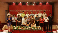 >>8月18日,重庆文化产权交易中心服务商签约暨授牌仪式在重庆市大礼堂宾馆举行。三峡之子、汉盛文化艺术公司董事长别明江出席并获钻石保荐商席位,汉盛文化艺术公司投资六百余万元,负责四川省中心的运营,中心设在成都市、并将在四川省内各大地级城市设立分中心。文交中心由重庆市国有文化资产经营管理有限责任公司出资,经重庆市政府批准成立的国有文化产权交易服务机构。