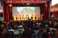 >>在“三八国际妇女节”来临之际,适逢重庆电视台《雾都夜话》剧组下榻万州神龙观景园,三峡之子龙武爱心艺术团,在万州神龙观景园举行了新年联谊文艺演出。艺术团负责人之一,三峡之子杨继如在联谊会上发言说,2014年艺术团到万州各乡镇、村、社区、学校、敬老院等地共义演了14场,并组织中西医专家举行义诊三次,义诊群众300余人,临近春节期间,组织画家团队现场为村民写春联200多副,丰富了万州市民文艺生活。
