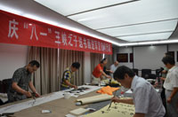 >>7月30日上午,在即将迎来中国人民解放军建军88周年之际,三峡之子联合会组织三峡之子王岱佛、黄龙长等8名三峡著名书画家,来到万州区人武部,开展庆“八•一”送书画进军营慰问活动。万州区委常委、人武部政委刘星在简单的欢迎仪式上说:“在‘八一’建军节即将来临,以及中国人民抗日战争暨世界反法西斯战争胜利70周年之际,举行此次书画进军营活动,非常有意义。”