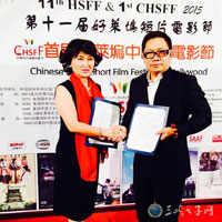 >> 8月22日下午,在美国好莱坞举行的第十一届好莱坞短片电影节上,联合会副会长、三峡之子胡适之企业大地飞歌、央视微电影美丽中国频道,与美国好莱坞控股集团、好莱坞短片电影协会主席由佳女士签署战略合作协议,就关于中国微电影与好莱坞电影界的互融互通互动达成系列战略合作。会长戴维先生以及好莱坞短片节组委会共同主席艾伦.贝利等中外著名影人约300嘉宾,共同见证了这一重要而又充满无尽想象的合作!