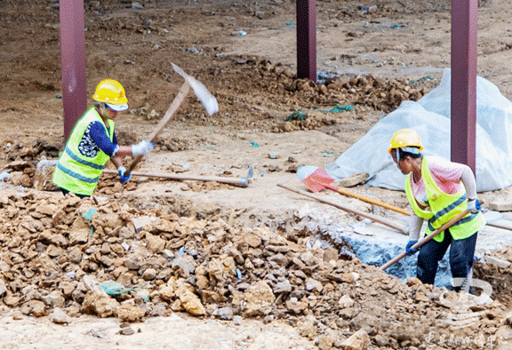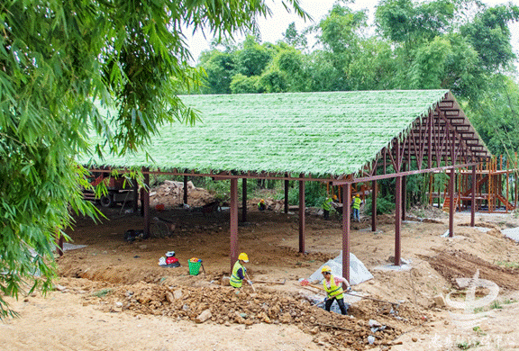 9月11日,皇华城考古遗址公园考古体验区项目建设现场,工人在紧张施工。